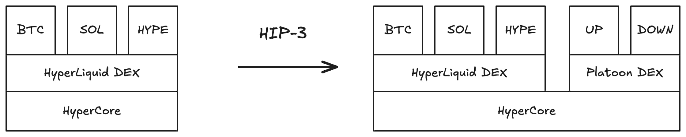 HIP-3 turns Hyperliquid into a single-settlement, multi-venue ecosystem (since each new deployer makes a new DEX). It is unlikely users will be able to intelligently use their collateral across different HIP-3 DEXs by default due to the siloed nature of the DEXs.